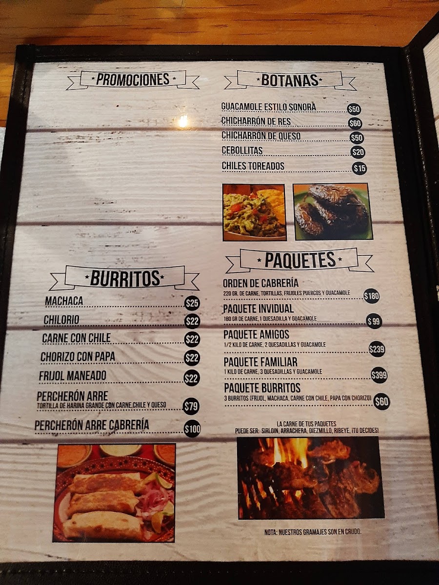 Welcome to Arre Sonora, a culinary gem located in the vibrant heart of Ciudad de Mexico. Specializing in authentic Sonoran cuisine, Arre Sonora is celebrated for its mouthwatering meat dishes and rich flavors. With an array of options, customers revel in the Paquete Familiar, featuring a generous kilo of meat accompanied by quesadillas and guacamole for just MX$399.00, while the Tacos de Cabeza are a must-try at MX$25.00.